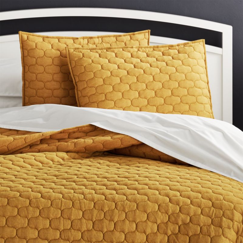 Fontaine Mustard Yellow Cotton Quilts And Pillow Shams